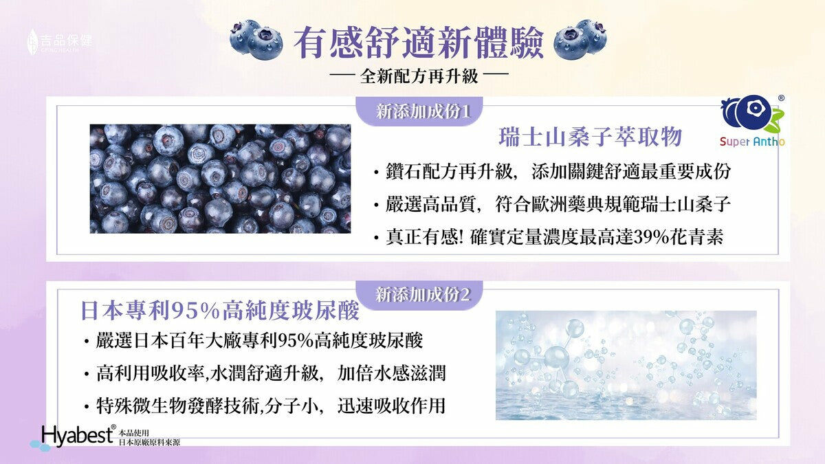 瑞士專利山桑子花青素x日本專利95%高純度玻尿酸