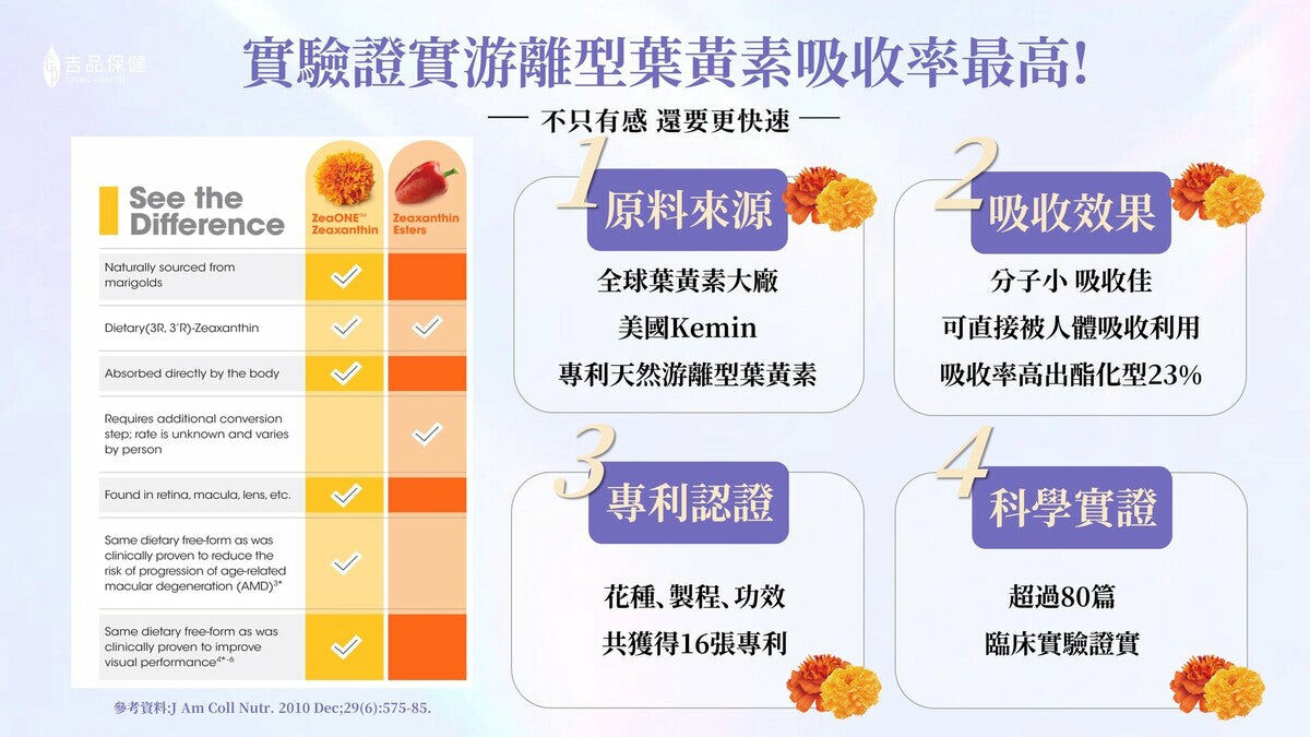 ◆DHA+硒酵母+鋅酵母,强化葉黃素吸收率