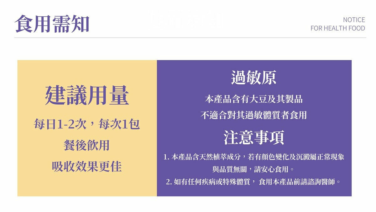 ◆本產品含天然植萃成分,若有顏色變化及沉澱屬正常現象,與品質無關,請安心食用