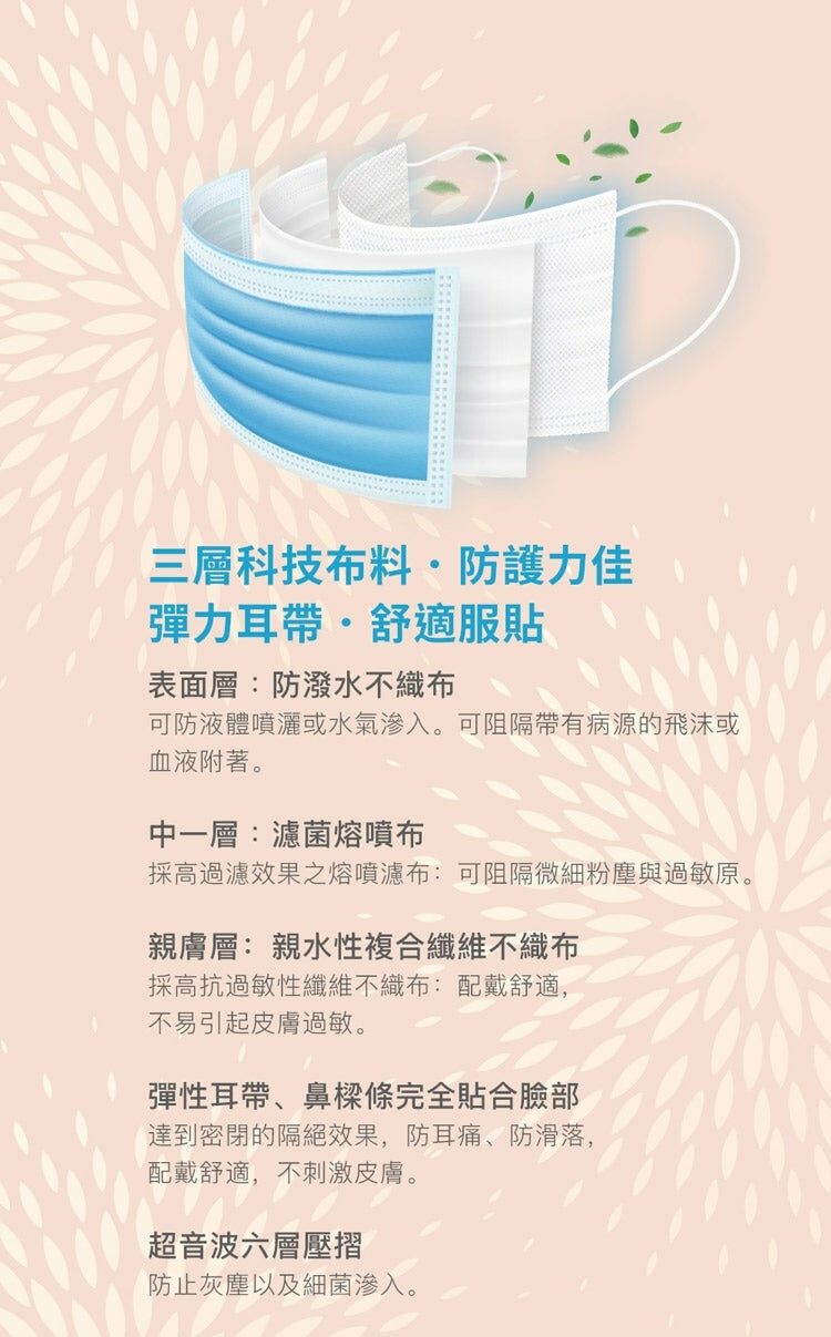 ◆ 商品數量:10入/盒 ◆ 商品材質:三層不織布(外層潑水層,中間熔噴布、內層不織布) ◆ 商品尺寸:成人平面約長17.5x寬9.5 CM/片 數量:10片/盒 ◆ 商品外盒尺寸:約長21.5x寬11x高2CM ◆ 商品重量:約120g / 盒 ◆ 商品產地:台灣 ◆ 製造日期:依外盒標示 ◆ 有效期限:5年 |