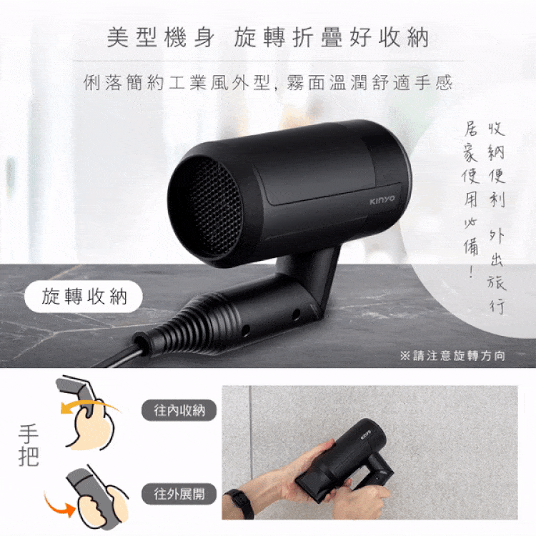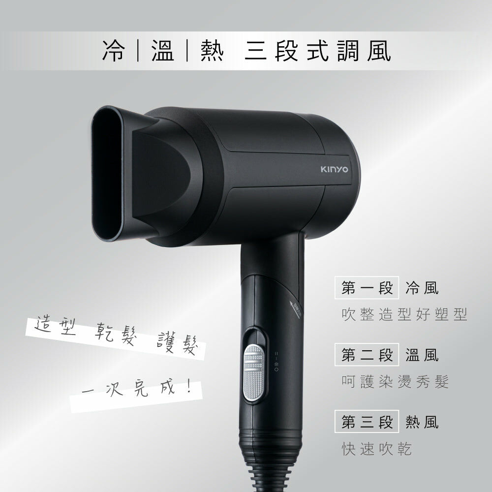 | ◆品名:【KINYO】輕量負離子摺疊吹風機 ◆額定電壓:AC110V ◆ ◆額定頻率:60Hz ◆消耗功率:1000W ◆負離子濃度:300萬 ◆◆風量:1.3m3/分 ◆ 三檔調風:熱風/溫風/冷風 ◆ 材質:ABS 塑膠 ◆產品尺寸:W170xH235xD65 mm ◆產品重量:405 g ◆產地:中國 ◆BSMI:R4A106 |