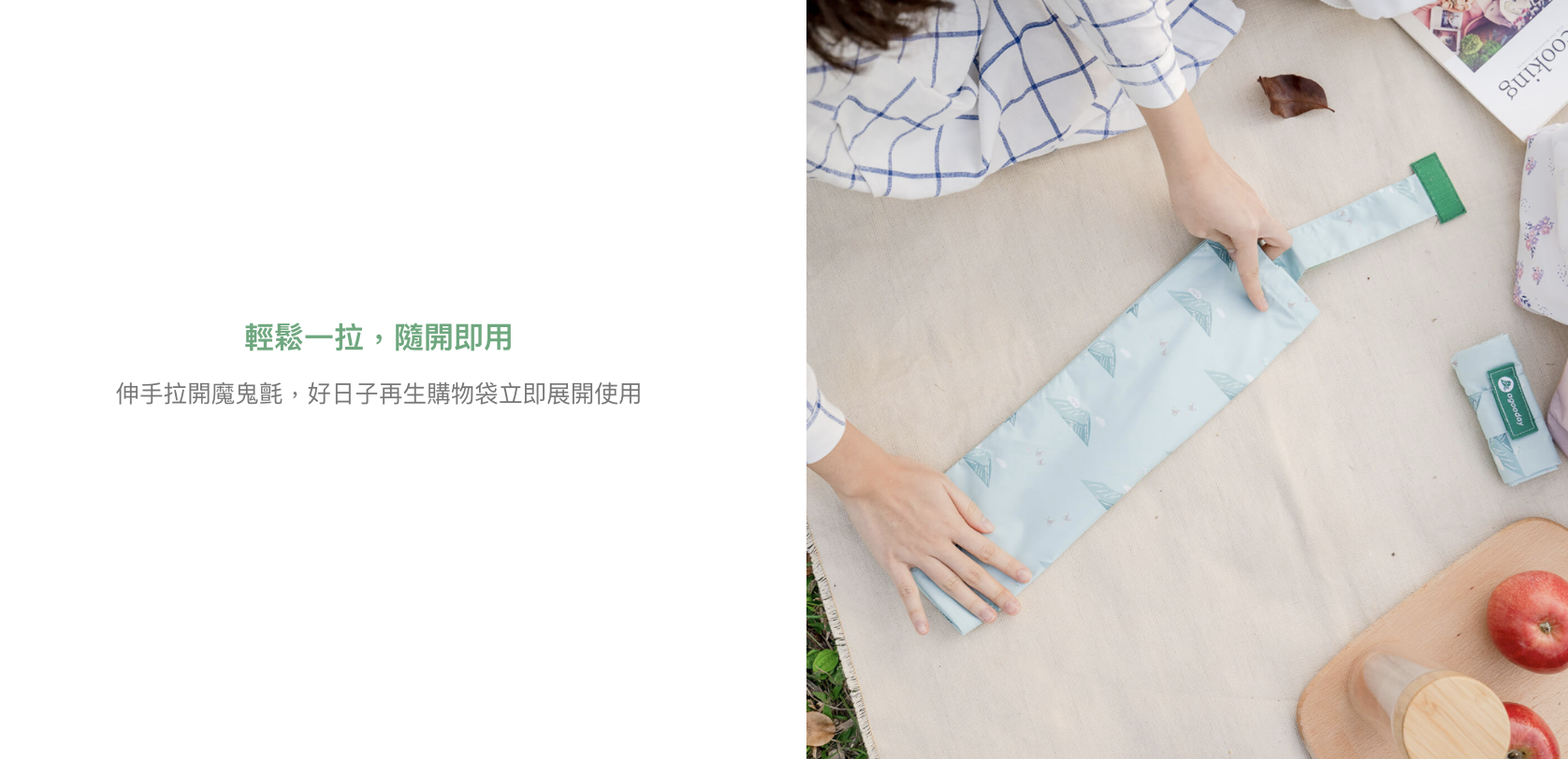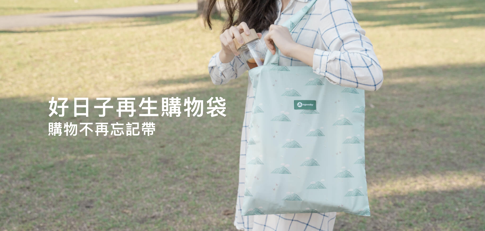 總是在要買東西時才發現「啊!購物袋又放在家裡……」好日子再生購物袋,不只讓你輕鬆天天帶,再生材質對環境更友善。