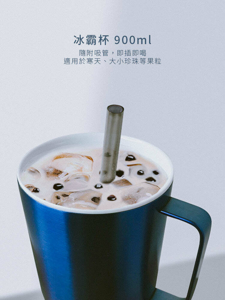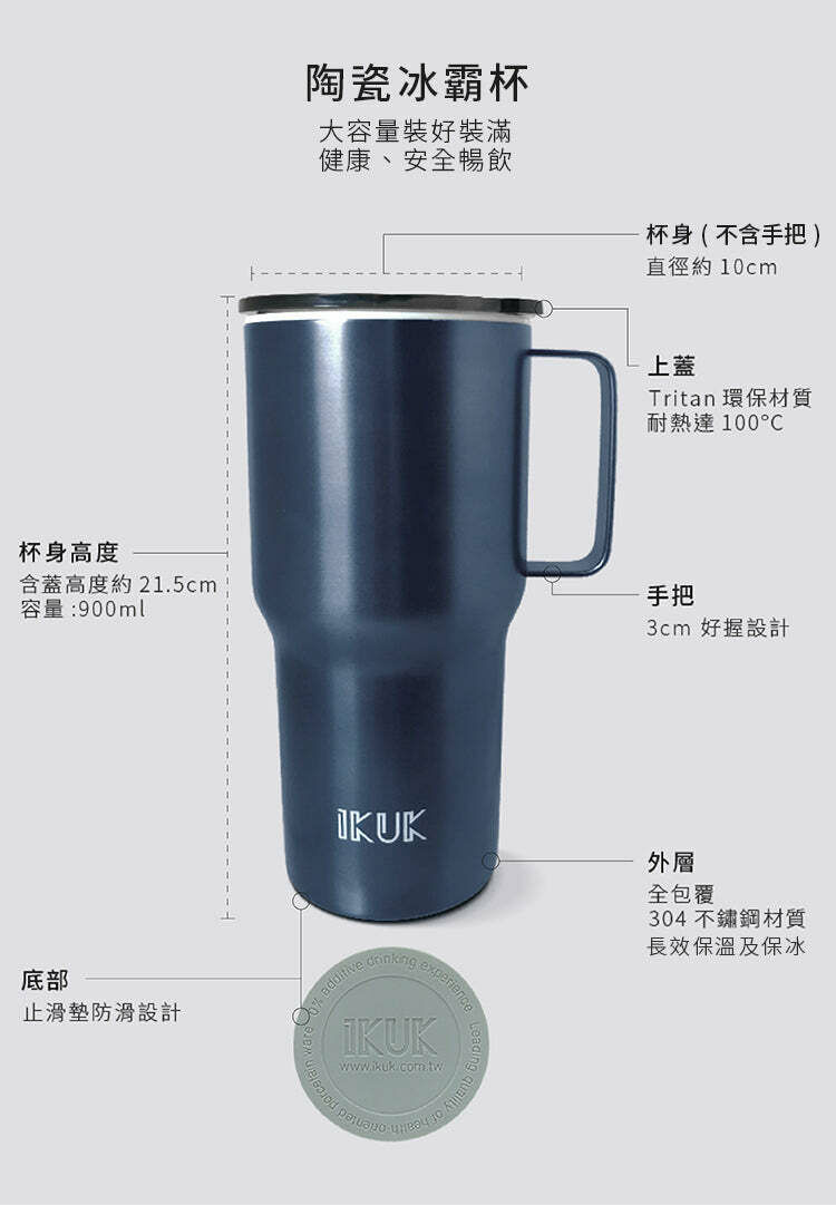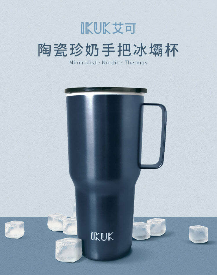 IKUK珍奶陶瓷冰霸杯-手把型900ml(太平洋藍)