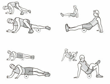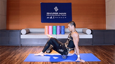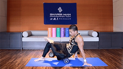 ![]() | ►舒緩部位:臀部 / 臀大肌 ►使用教學:坐在滾輪上,雙手支撐地面後將一腳疊置另一腿上,將身體緩緩傾斜緩緩尋找激痛點,配合呼吸慢慢滾動滾輪(可兩腳替換滾動)。 ►動作次數:一個部位 30~40 秒 (依個人狀況調整) |