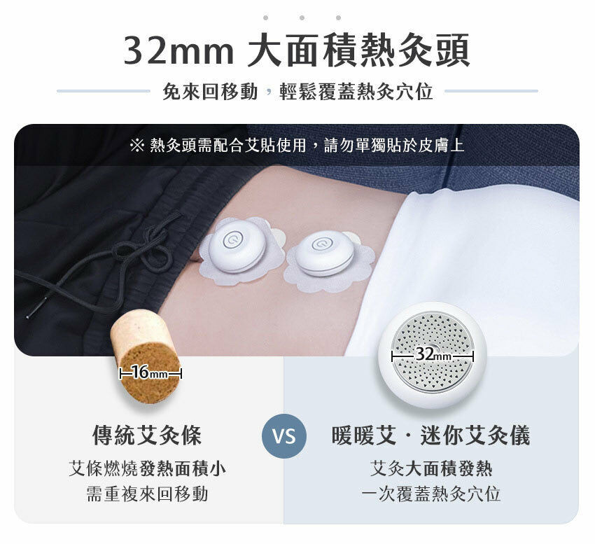 ❸ 32mm 大面積熱灸頭,多部位可使用