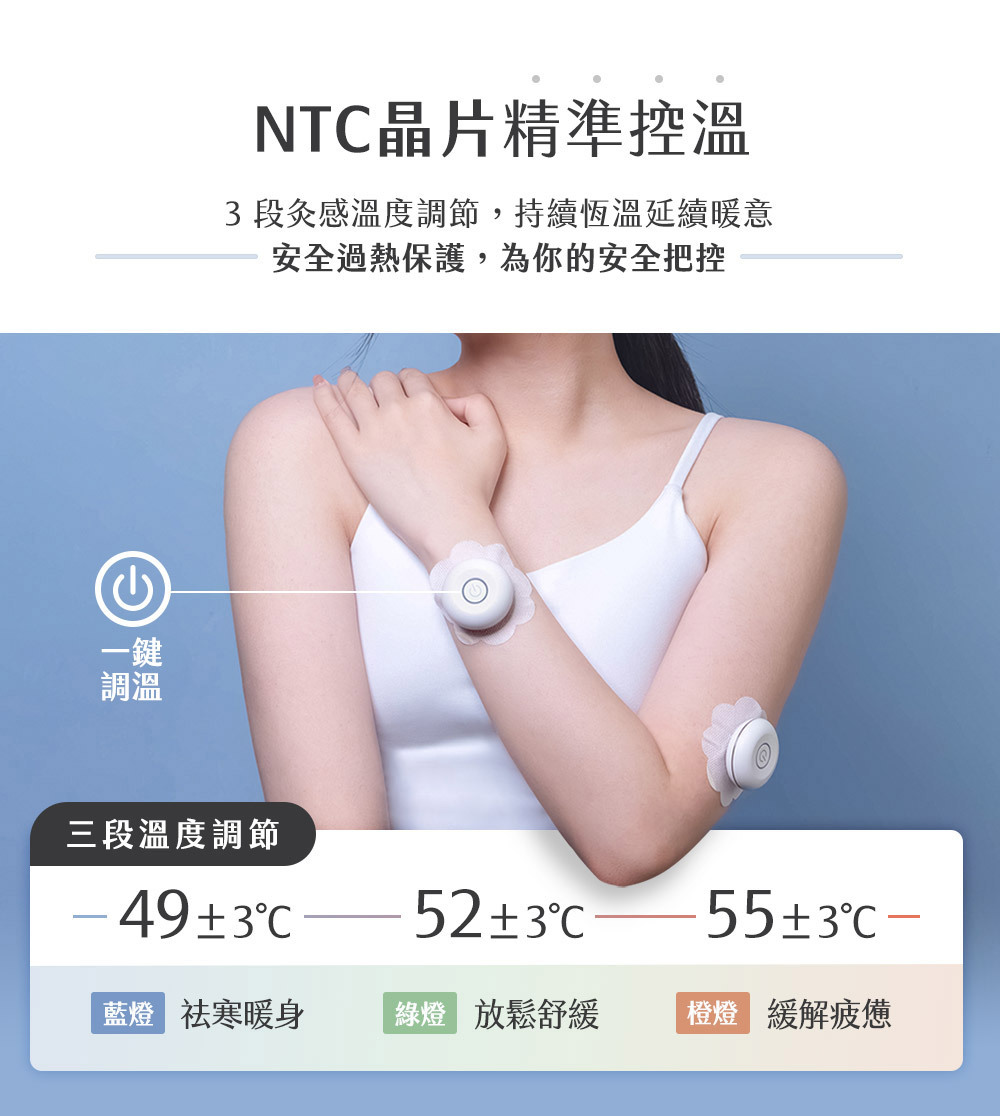 ※ 建議溫度從最低段開始,根據個人情況逐漸調節至適合自己的溫度,避免對熱不敏感導致皮膚燙傷。