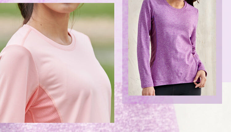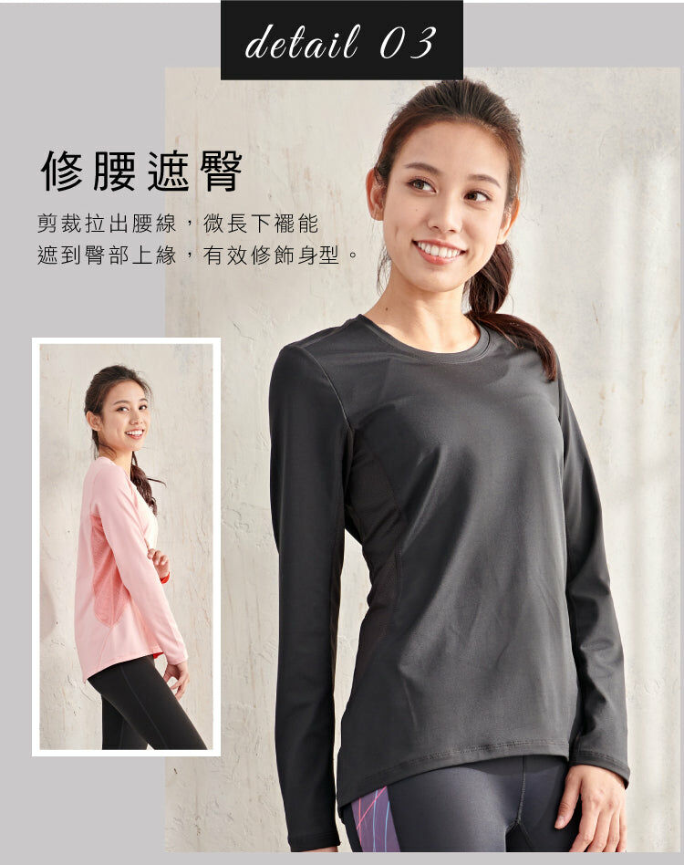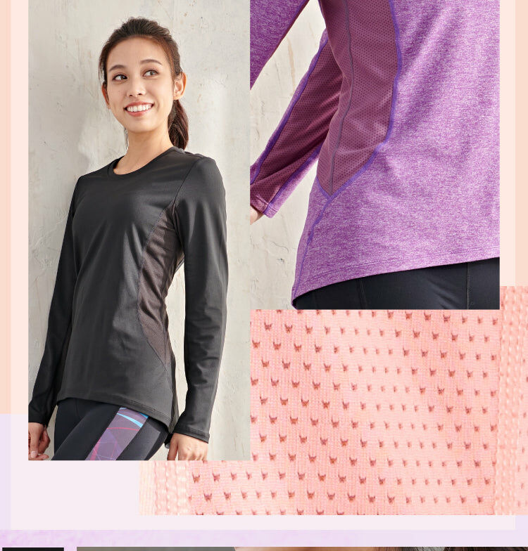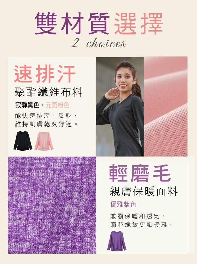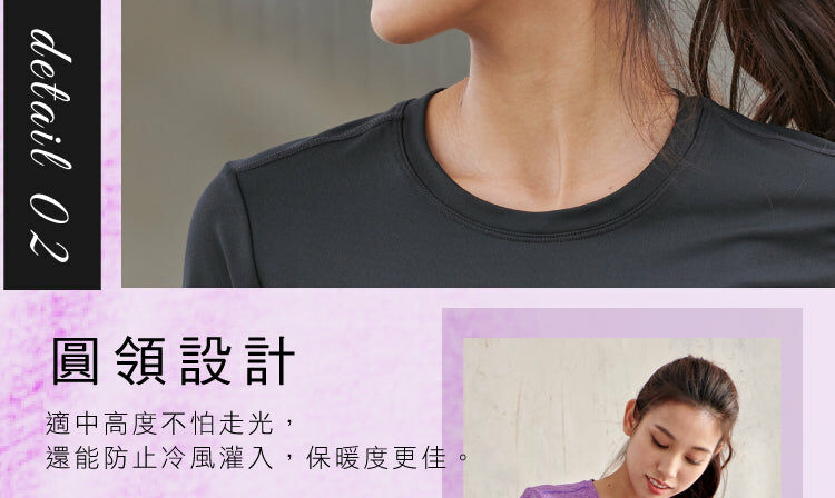 ✦「黑色、粉色」採用聚酯纖維布料,快速排汗!✦「紫色」選用親膚保暖面料,兼顧保暖和透氣!✦ 腰側拼接網布,增強透氣效果✦ 圓領遮蓋至鎖骨,防風保暖✦ 腰線剪裁修飾,微長下擺遮臀