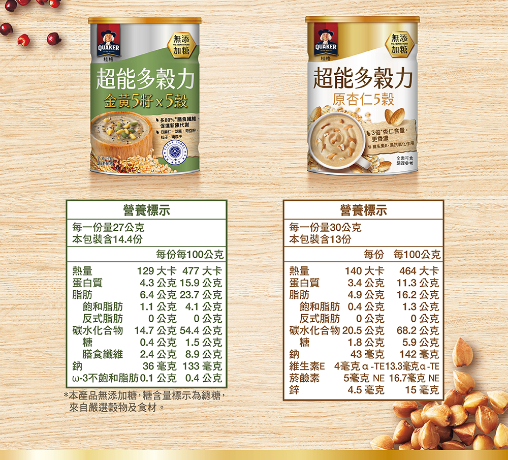 ◆品名:【桂格】超能多穀力原杏仁5穀-無添加糖390g/罐