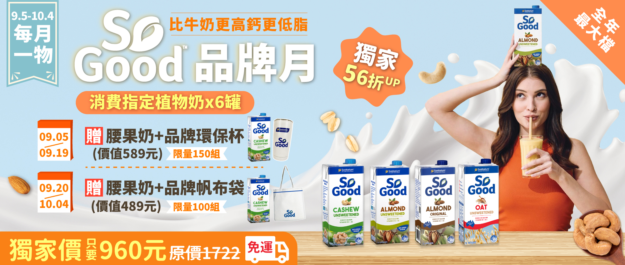 ▶即贈SO GOOD腰果奶(無糖)+品牌帆布袋