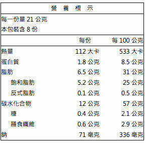 ◆ 請置於乾燥陰涼處,避免日曬;開封後請儘早食用完畢。 ◆ 過敏原資訊:本產品含麩質穀類、牛奶製品及大豆製品,不適合其過敏體質者食用,該生產線亦生產含蛋的產品。 |