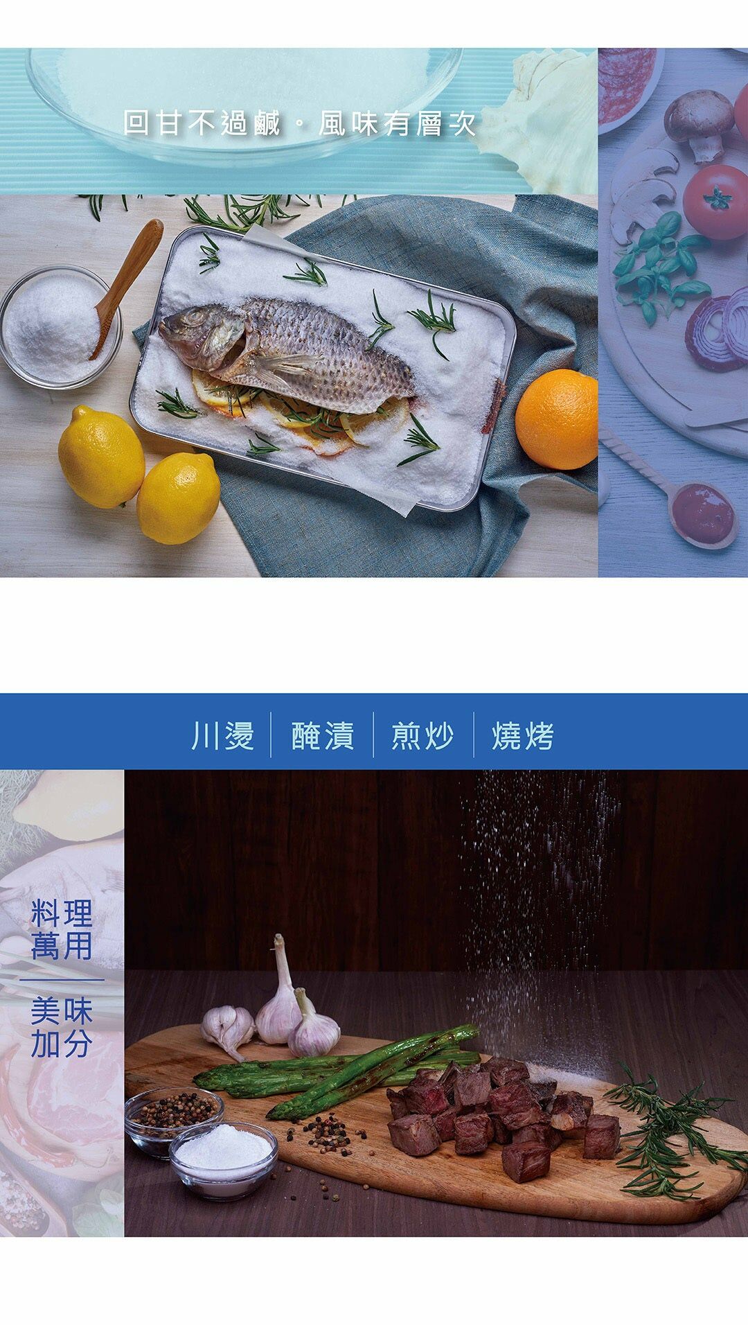 日曬海鹽除氯化鈉之外,保留了海水中的微量元素(鉀、鈣、鎂)。細細品嘗,會發現除了鹹味之外,還有一絲甘甜,酌量添加於料理中更能帶出食物原始的風味,讓料理層次更加豐富。