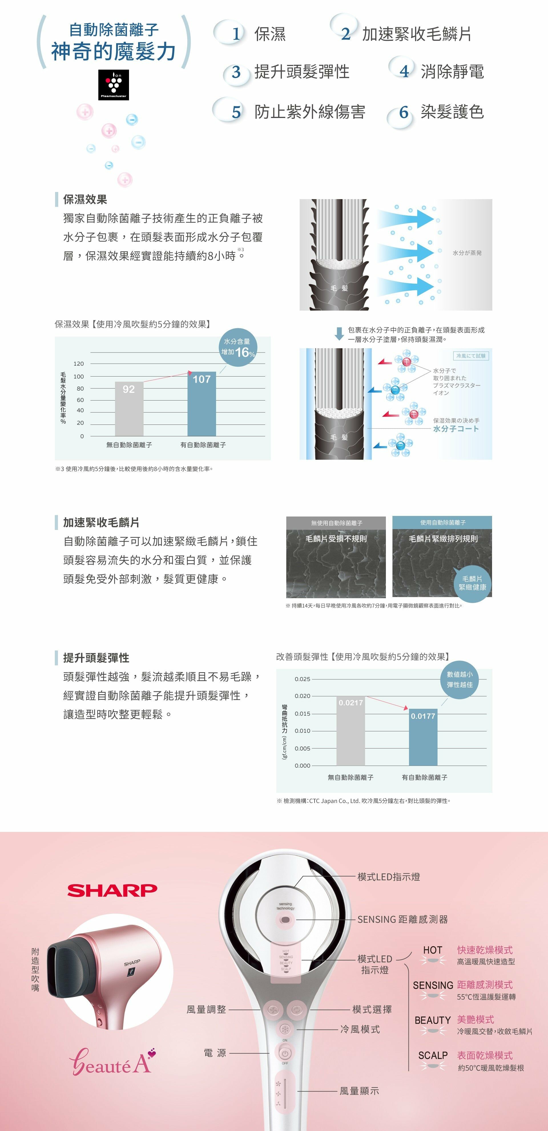 ◆ Plasmacluster正負離子技術 ◆ 保濕抑制靜電保護秀髮熱傷害