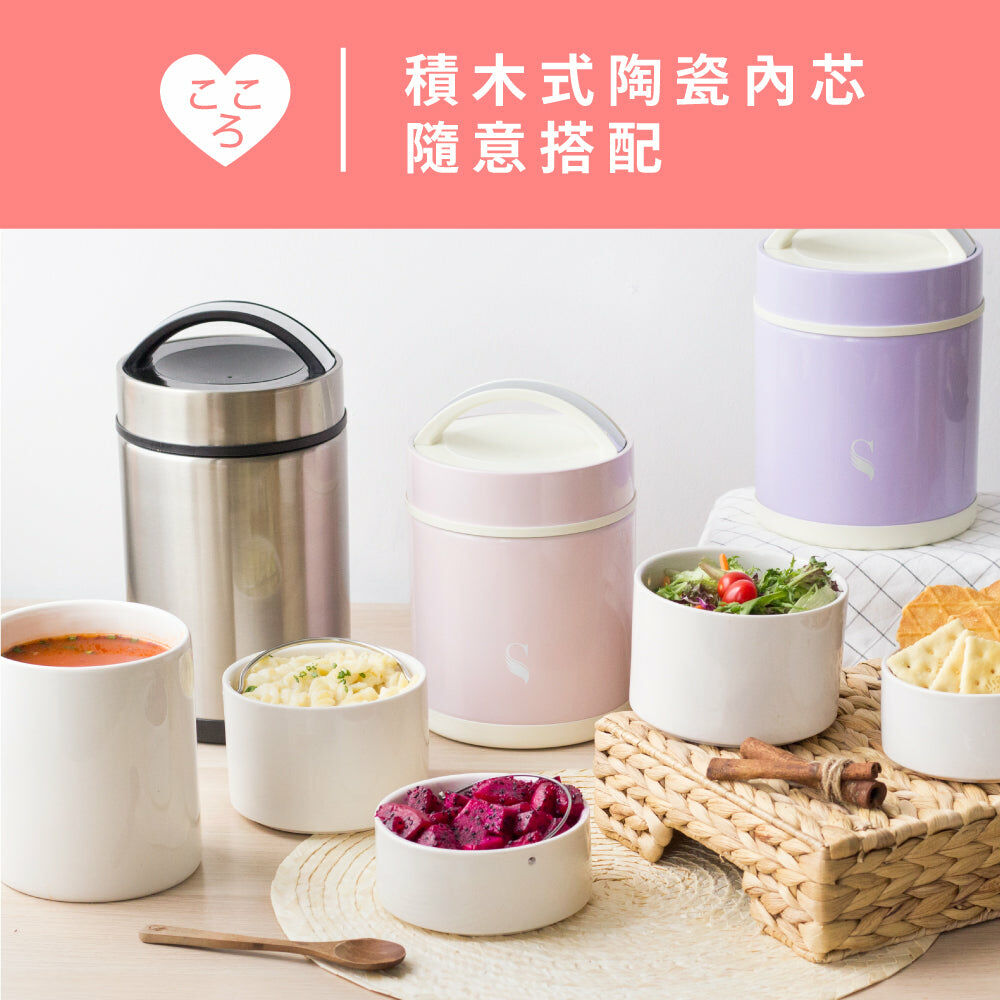 | ◆ 容量:陶瓷碗容量 - 550ml + 300ml + 300ml/不鏽鋼外殼容量 - 2200±110ml |