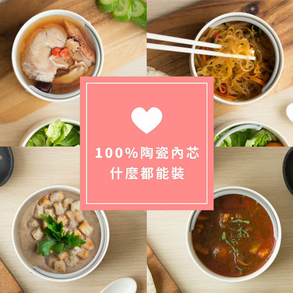 | ◆ 材質:罐身、罐蓋 - 304 不鏽鋼/罐蓋 - PP、食用級耐熱矽膠/內芯 - 100% 硬白瓷 |
