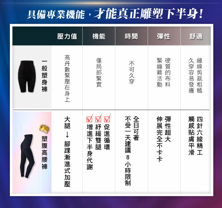 1. 版型和壓力值適合全天候穿著,不受一天建議 8 小時限制,非睡眠時間皆可穿著。