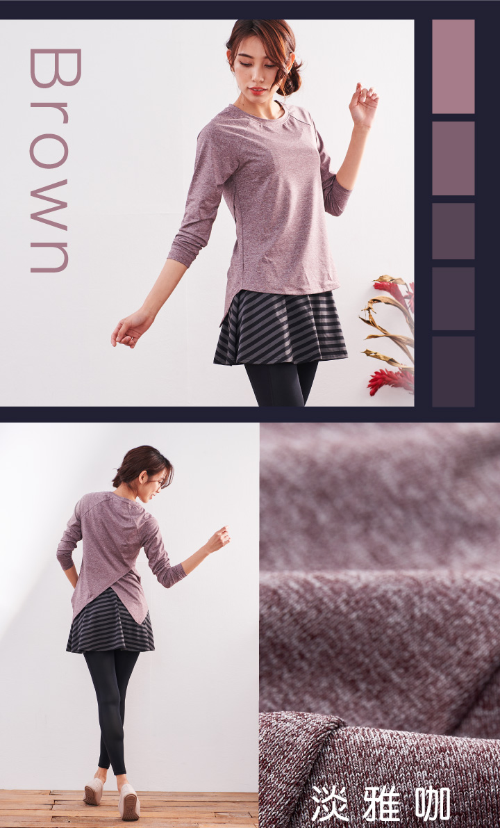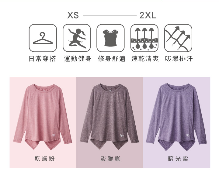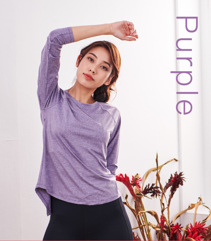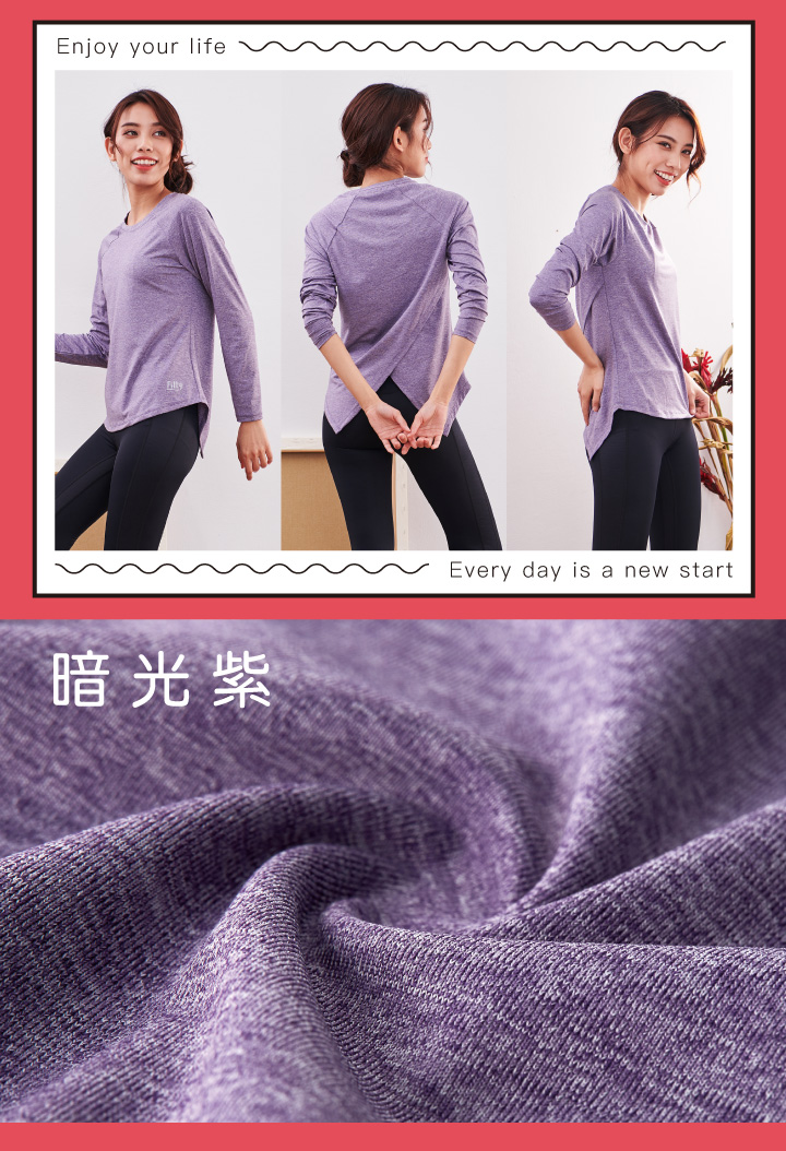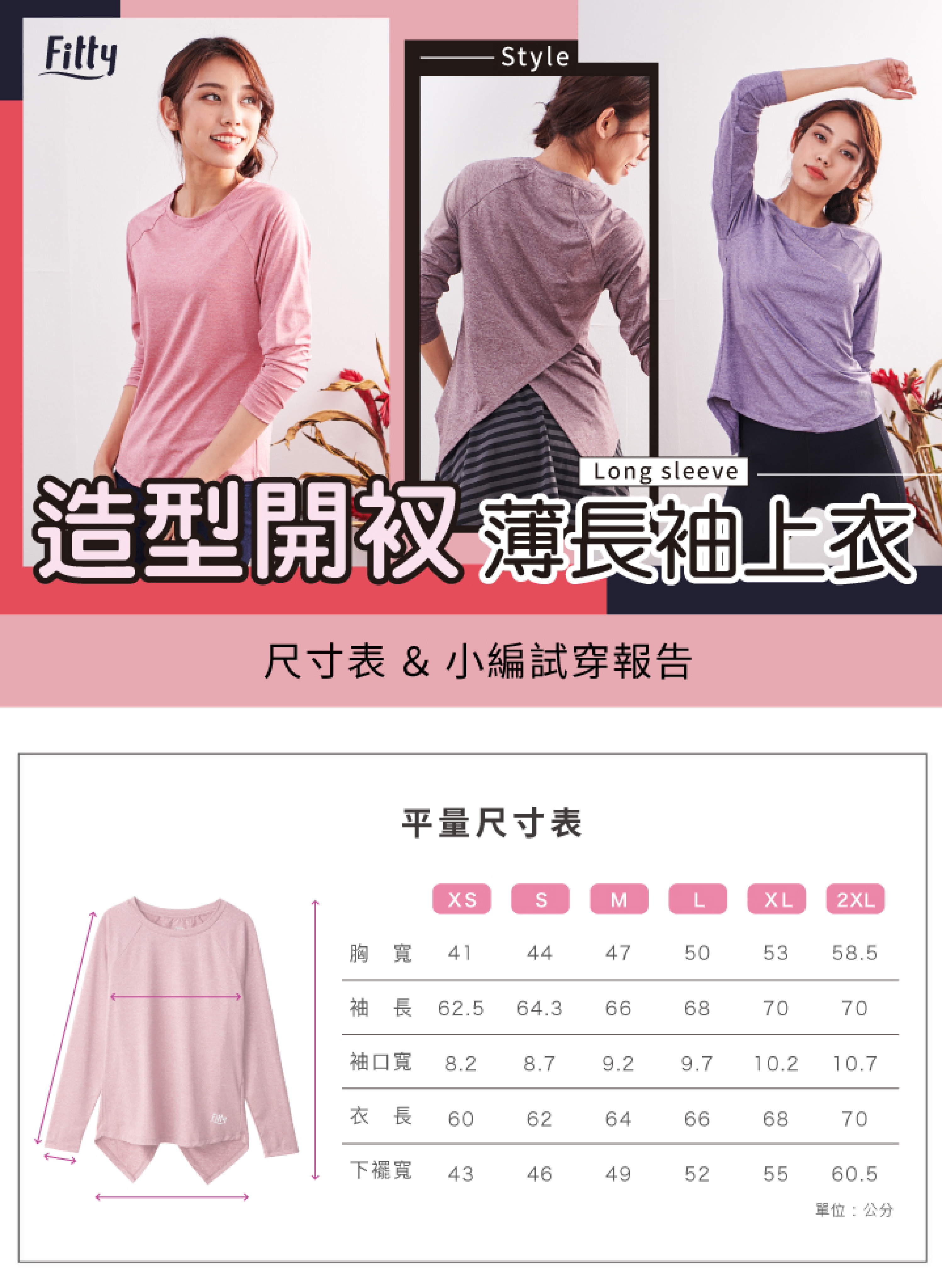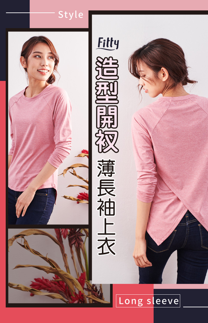【Fitty】造型開衩薄長袖上衣(暗光紫/乾燥粉)