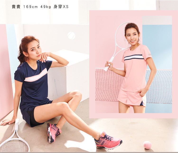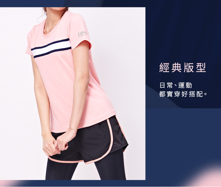 【Fitty】撞色橫條運動上衣(橘粉S)