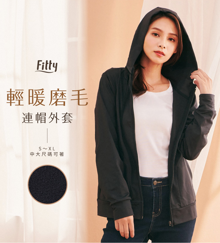 【Fitty】輕暖磨毛連帽外套(純黑M)