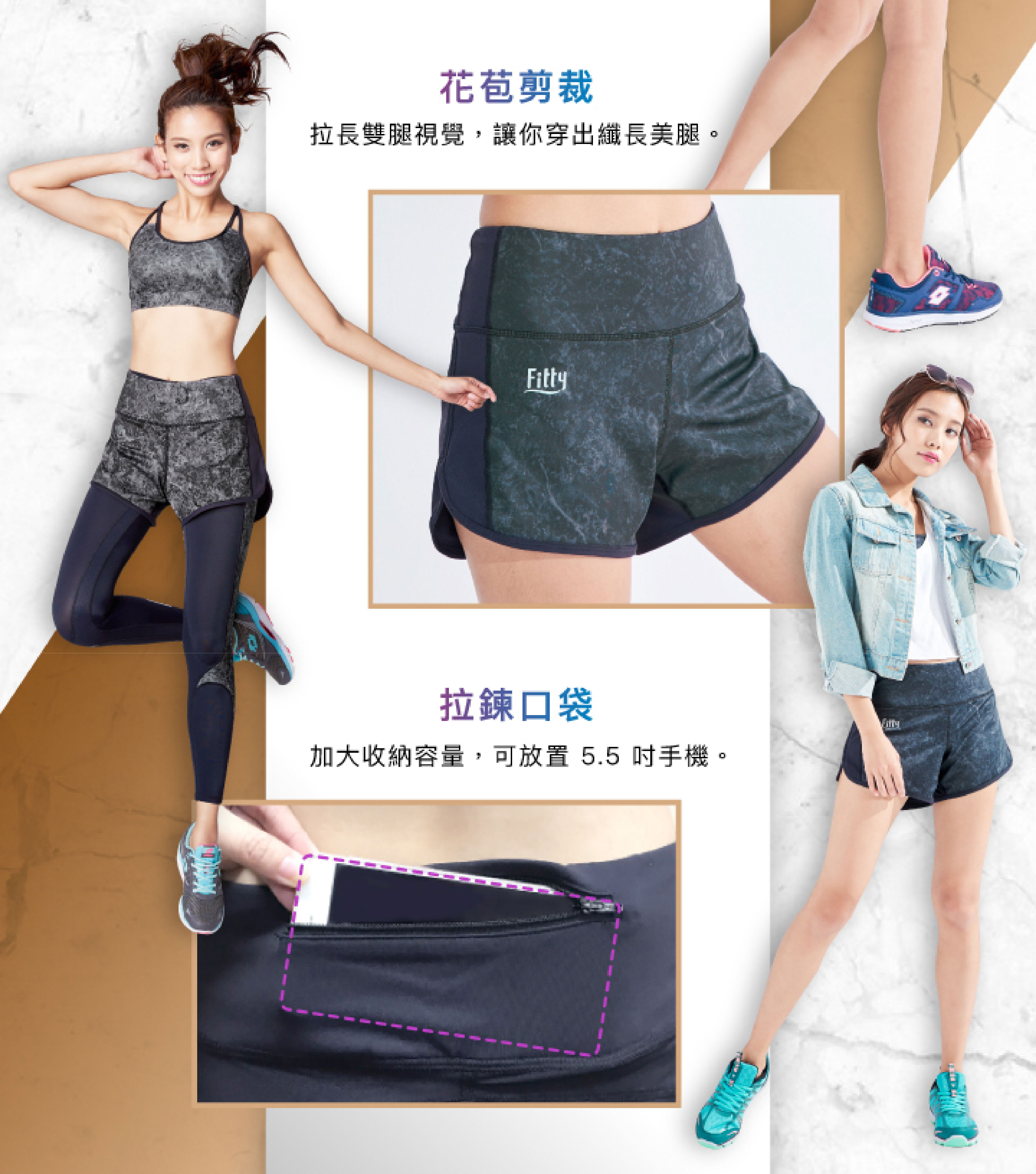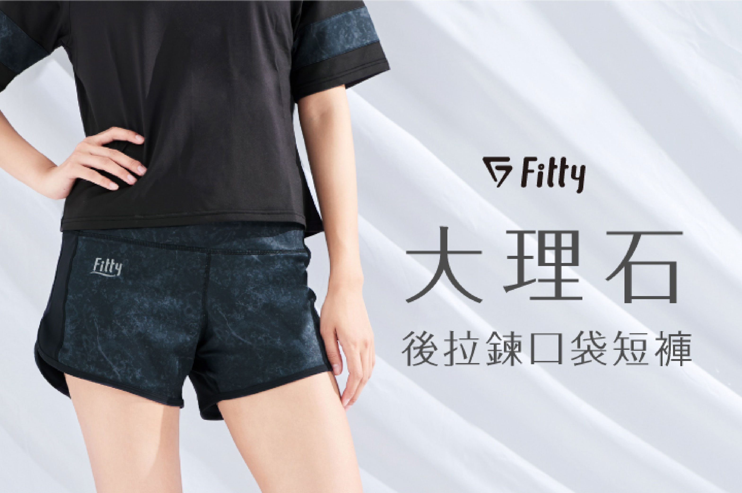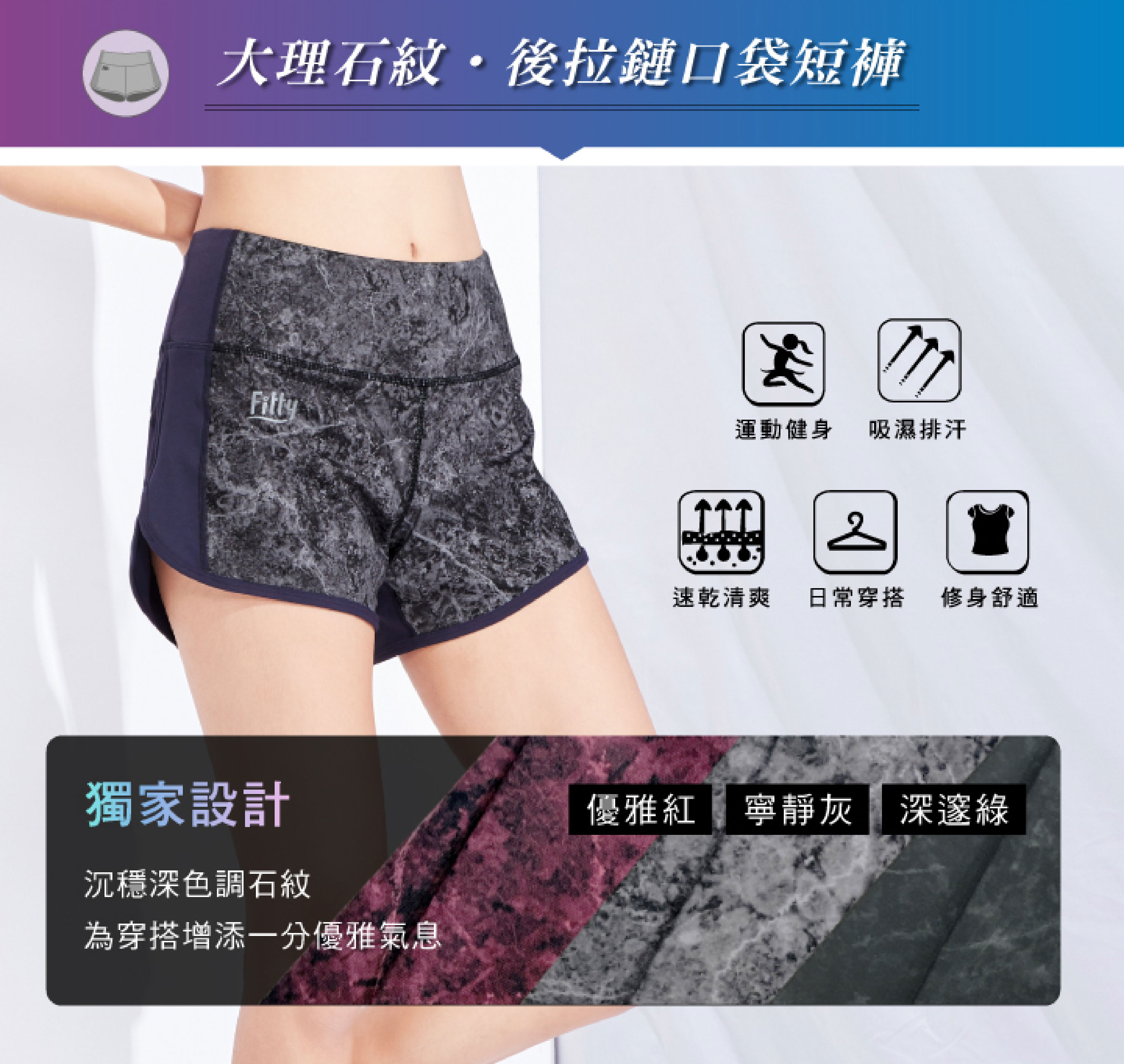 【Fitty】大理石紋後拉鍊口袋短褲(墨綠M)