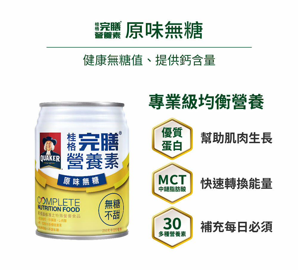 ◆ 商品名稱:【桂格】完膳原味無糖配方250ML