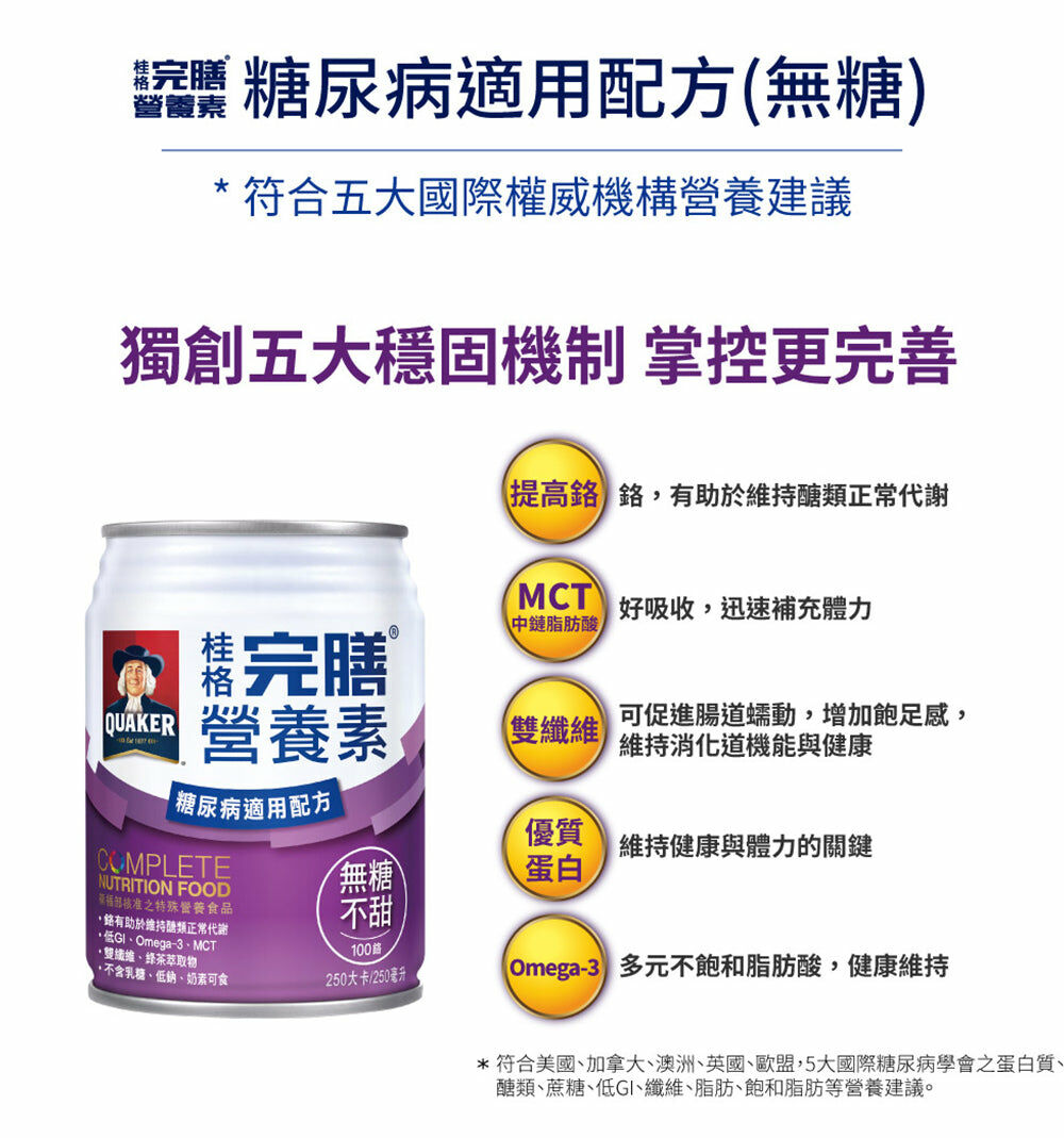 ◆ 商品名稱:完膳糖尿病100鉻無糖配方250MLx24罐/箱