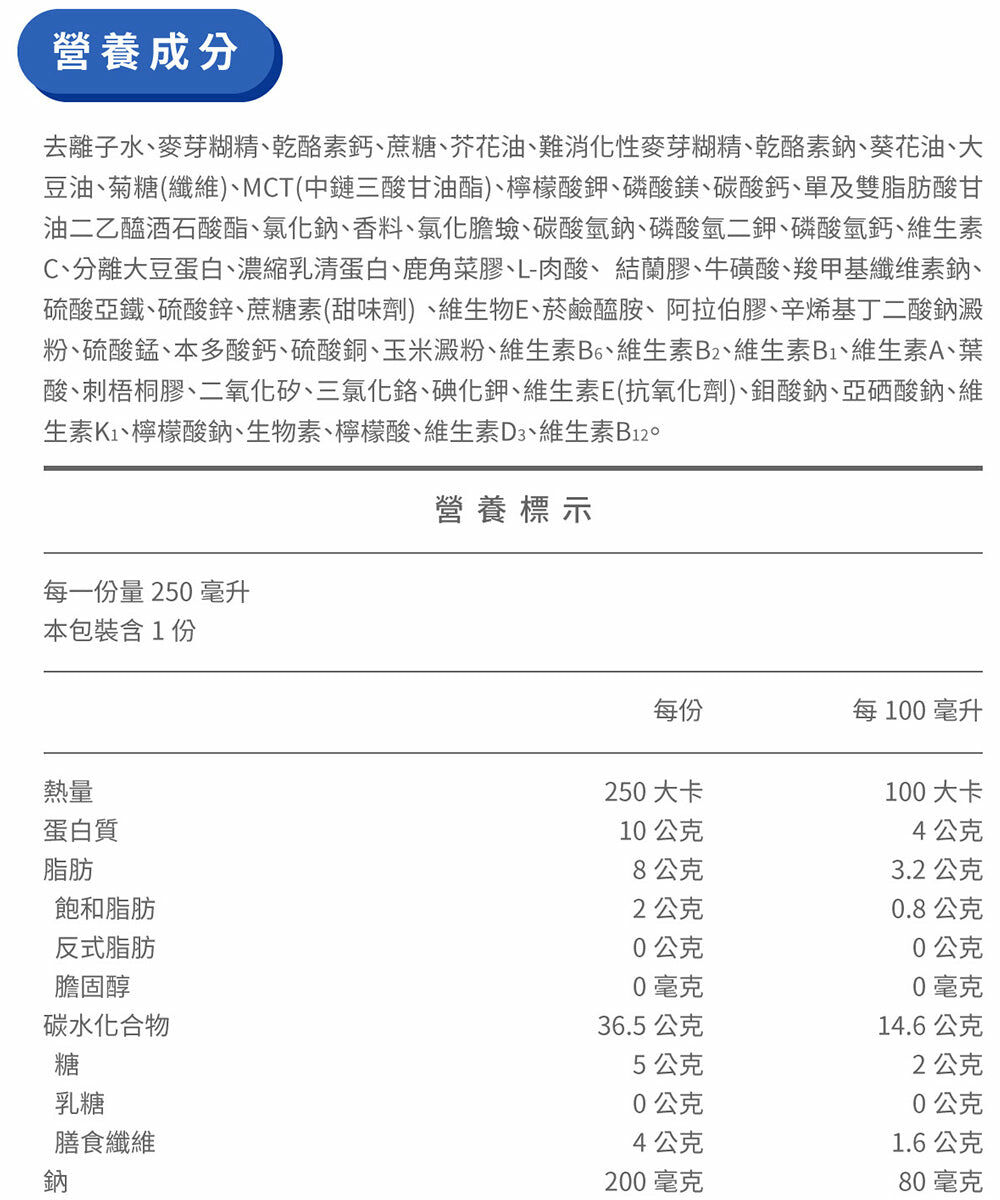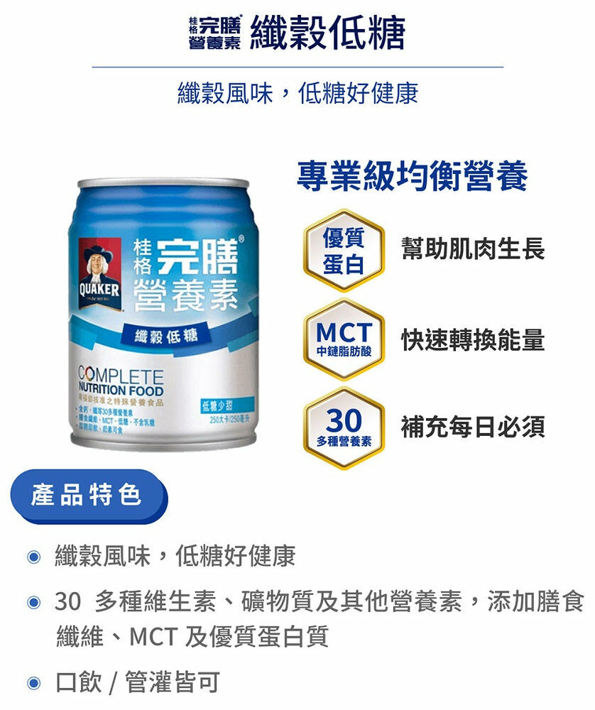 ◆ 商品名稱:【桂格】完膳纖穀低糖配方250MLx24罐/箱