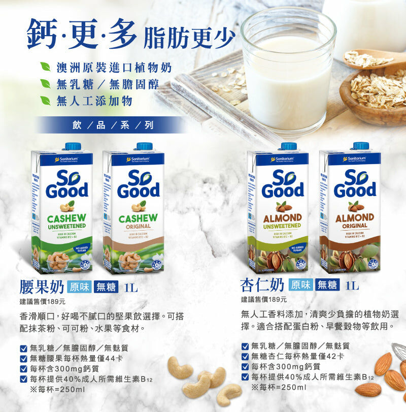 澳洲SO GOOD 無糖杏仁奶 本批效期:20250812
