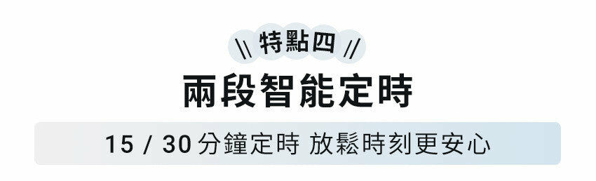 ❹ 15分鐘 / 30 分鐘兩段定時,舒適放鬆更安全