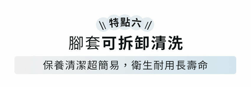 ❺ 腳套可拆洗,清潔保養輕鬆搞定