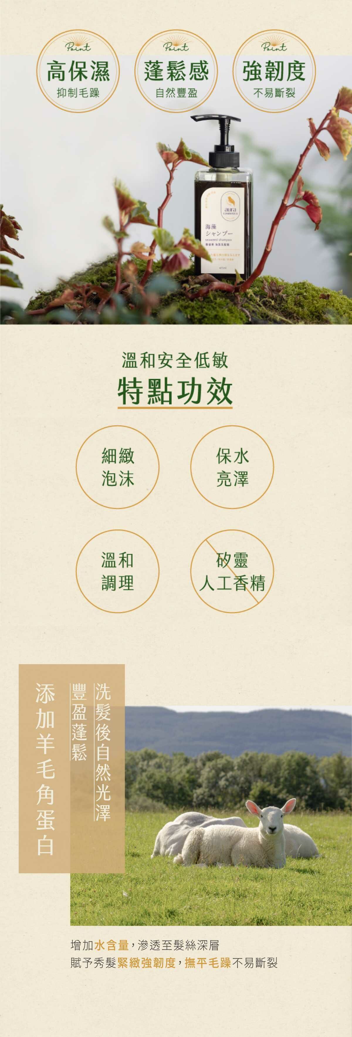 海藻濃縮萃取,用量只需一般洗髮精的1/2!